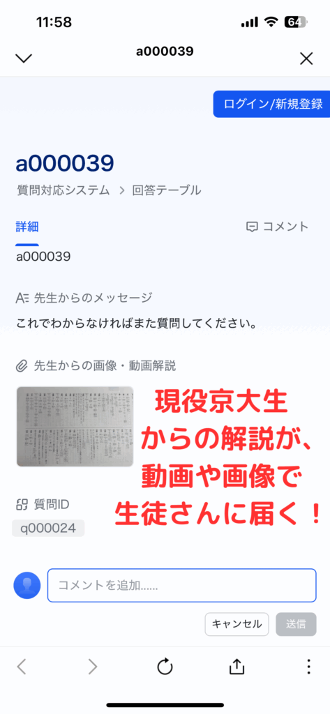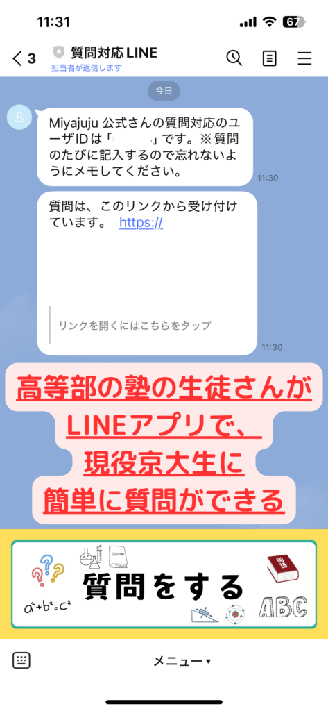 高校生が日常的に使い慣れたLINEアプリで生徒さんの質問から現役京大生の回答までを完結!