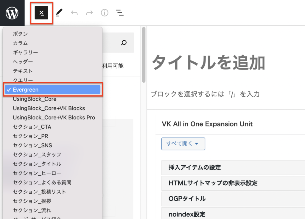 Evergreenスキンには、あえて背景をずらしたオフセット背景が指定できるブロックパターンを搭載しております。